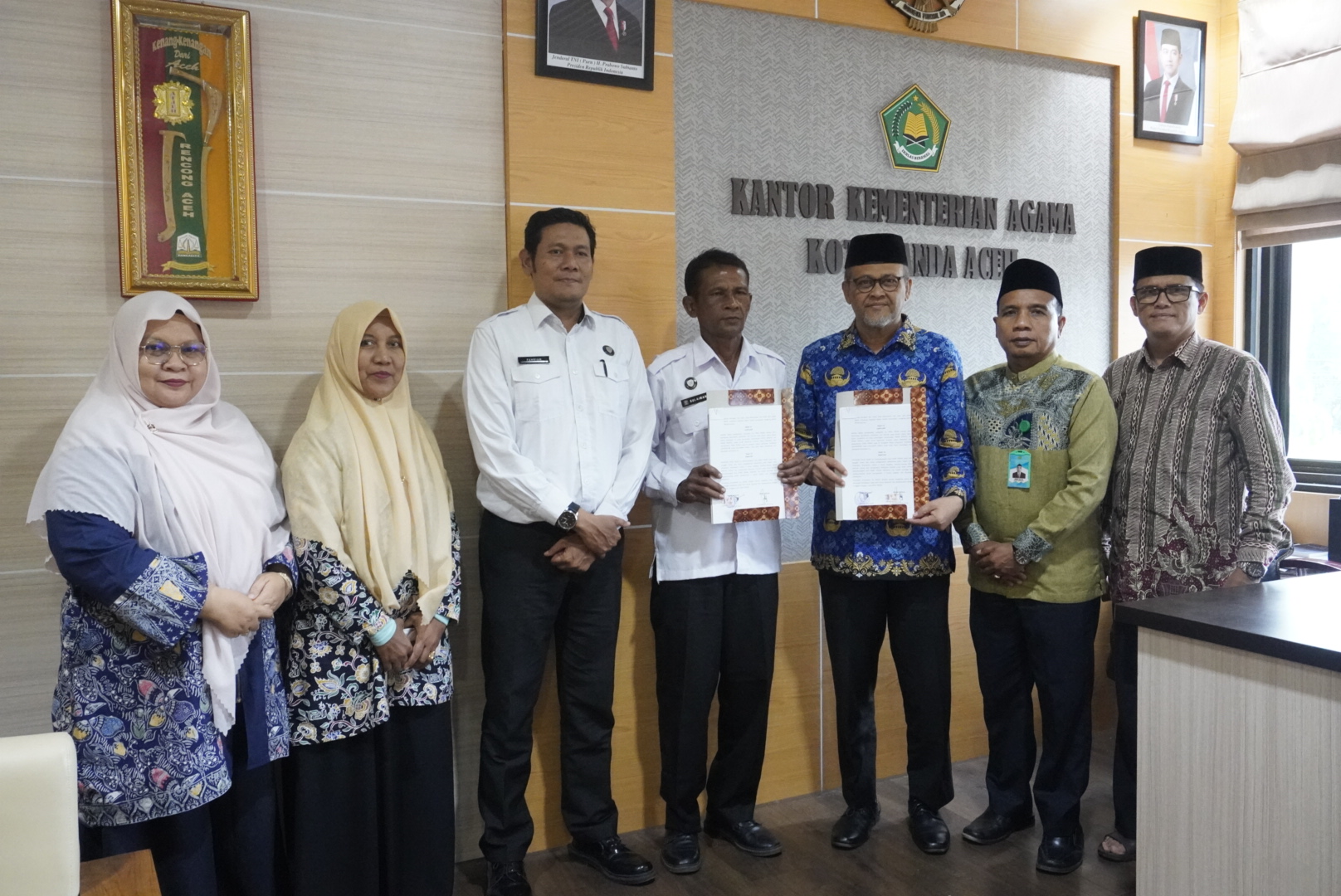 Kepala Kantor Kementerian Agama Kota Banda Aceh, H. Salman, S.Pd., M.Ag., melaksanakan serah terima perjanjian kerja sama (MoU) antara Kemenag Kota Banda Aceh dengan Lembaga Pembinaan Khusus Anak (LPKA) Banda Aceh, Rabu (1/10/2025).