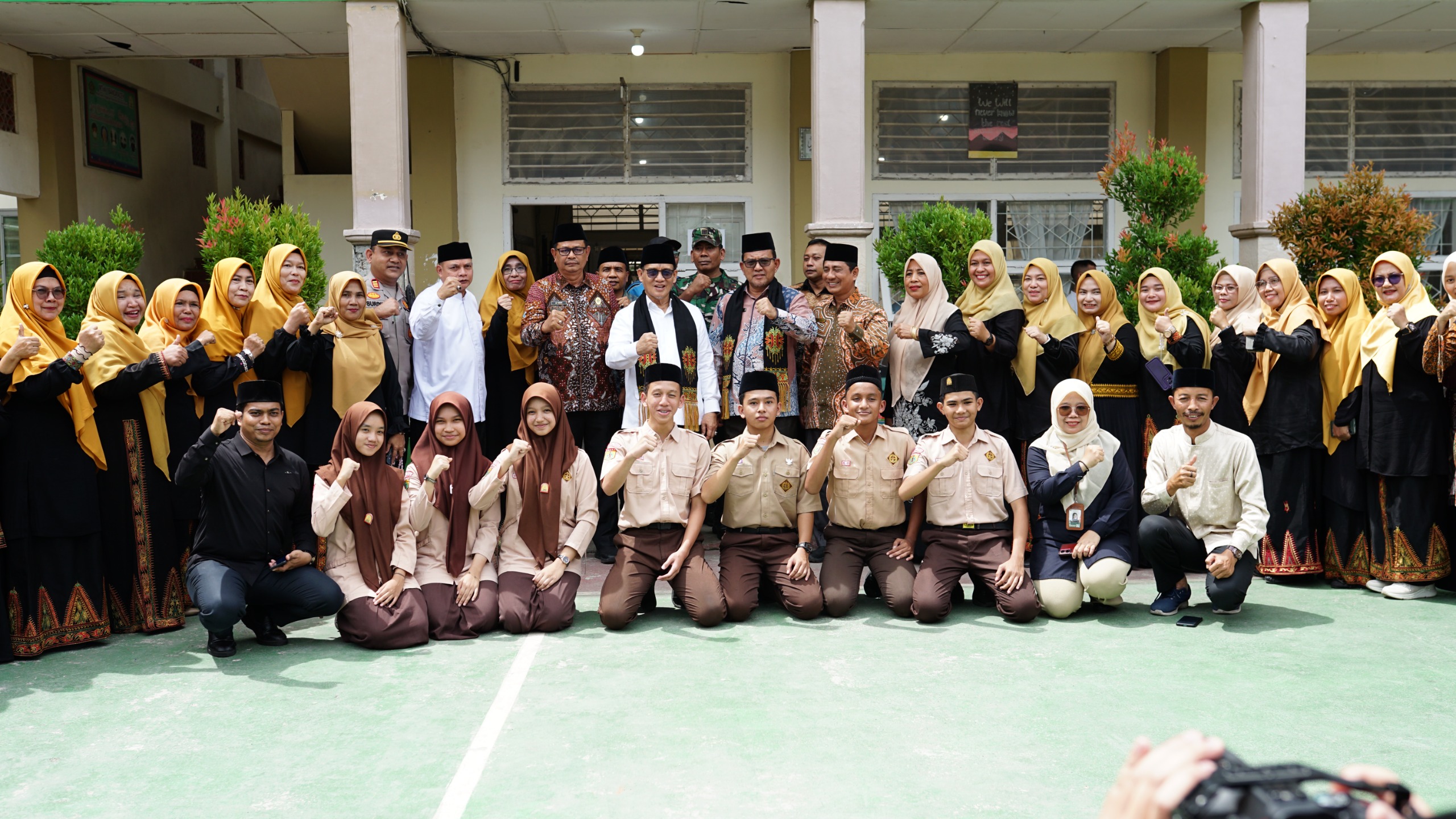 Kunjungan ini ditutup dengan sesi foto bersama Wamenag RI dengan siswa dan guru MTsN 1 Banda Aceh.